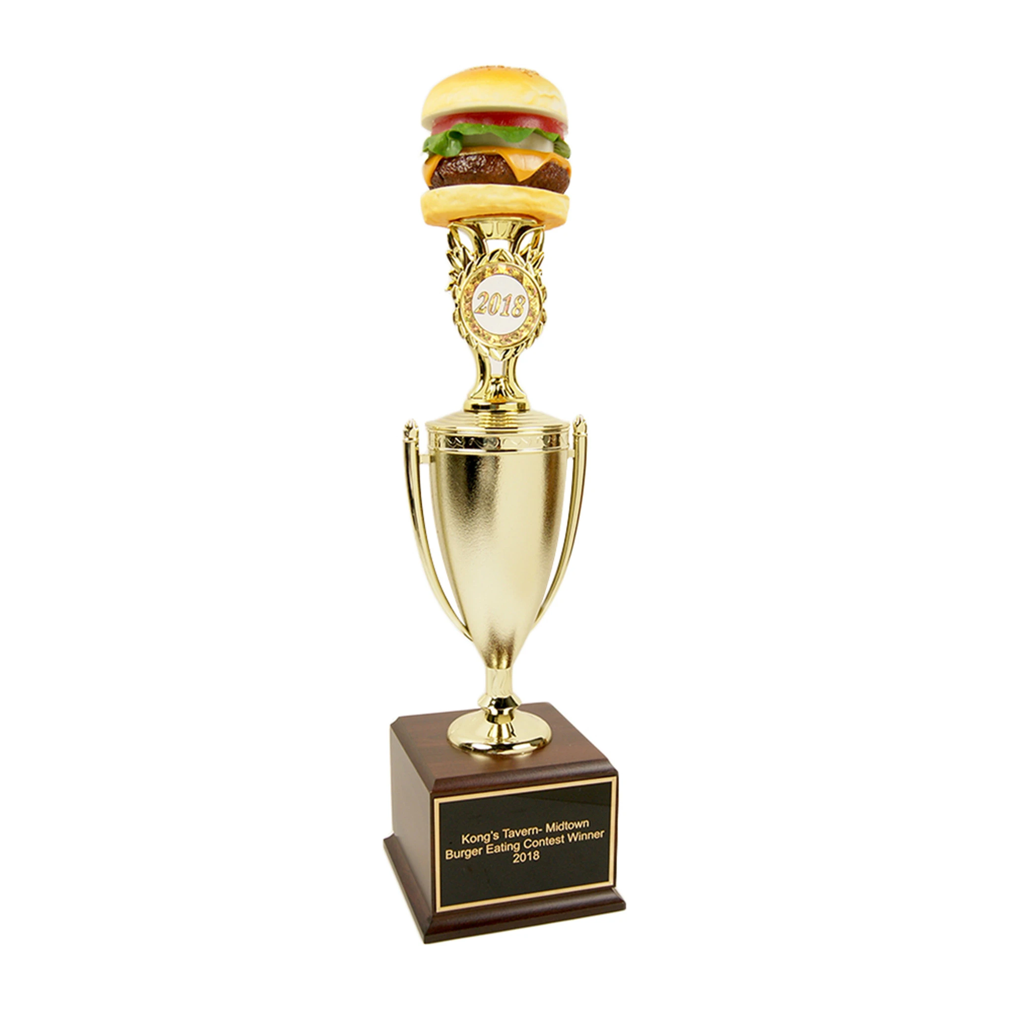 Our Deluxe Cheeseburger Trophy Cup is the ultimate prize for any burger contest!! We carry various sizes of burger awards, such as our Mini Slider Burger Trophy and the Hamburger Trophy.