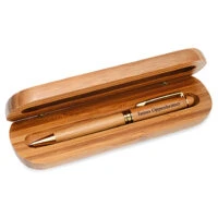 Your favorite golfer will love the clean, natural look of genuine bamboo, accented with elegant gold, in this ballpoint pen and case set. The bamboo case is laser-engraved with our Crossing Golf Clubs emblem and opens to reveal a grooved interior that holds the matching pen. Both the case and the pen can be personalized for free with your purchase. The set comes packaged in a handsome gift box.