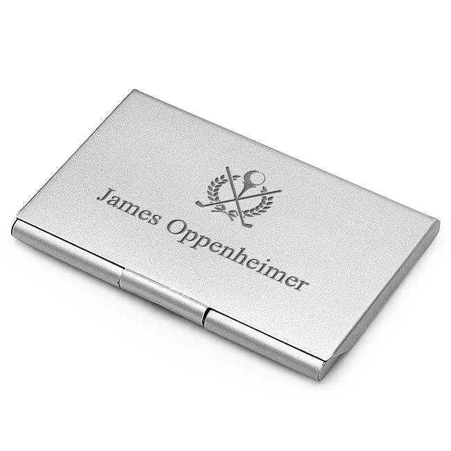 The successful executive knows that one must always make a great first impression! Seal every deal with your business cards stored in this acrylic-coated steel engraved card case. The engraved Crossing Golf Clubs emblem on the cover tells an interesting fact about you to clients and associates, and you could even make a new golf connection! Your name can be laser-engraved below the emblem for free with your purchase. The card case comes packaged in a handsome gift box, and makes a great gift for fellow golfers, too!