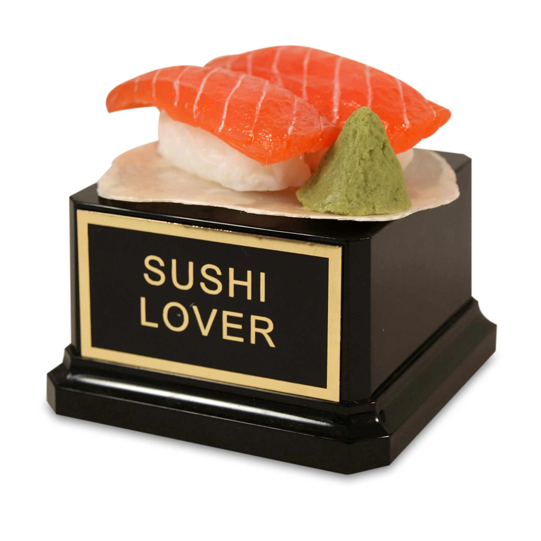 The Deluxe Salmon Sushi Trophy is perfect for any sushi fan! Our Deluxe Ikura Trophy will go great with this trophy! If you are having a sushi eating contest, look no further for an awesome sushi trophy.Â