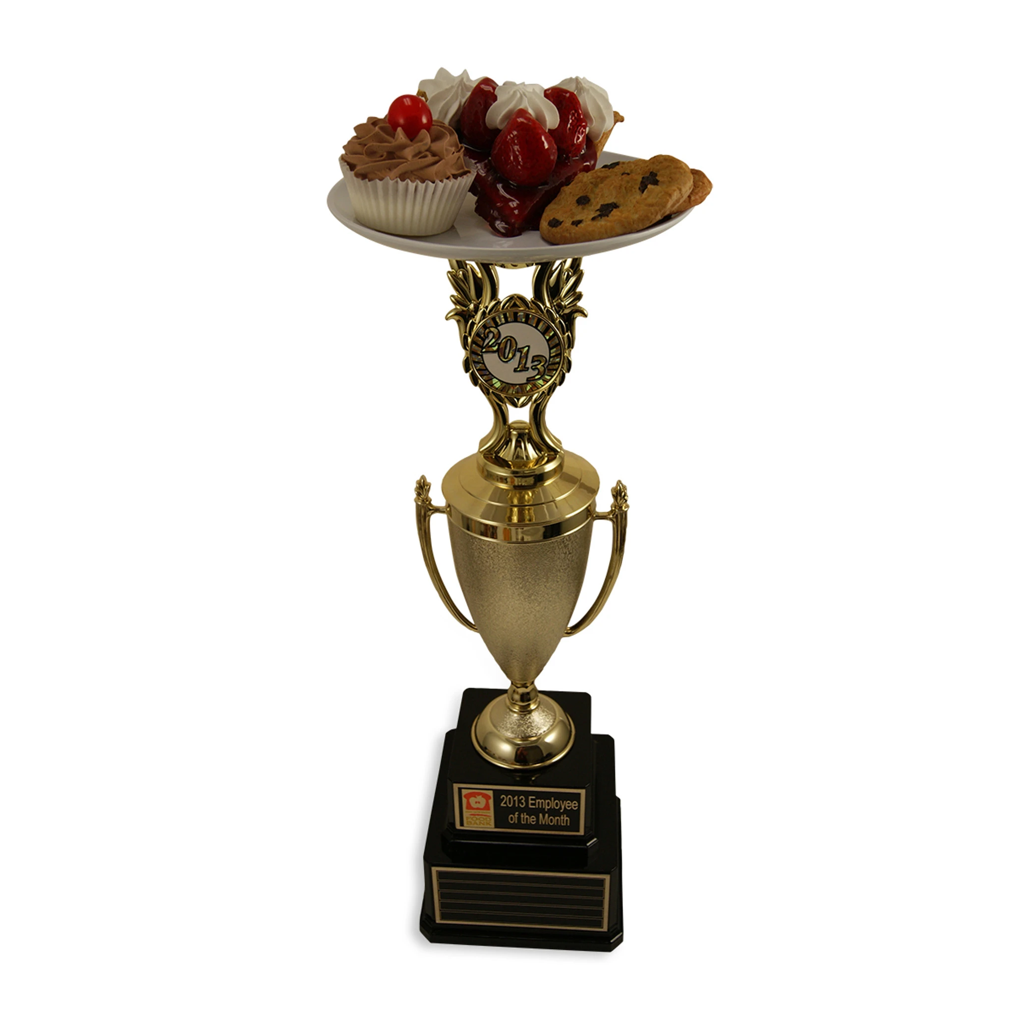 This Dessert Trophy is great any dessert eating contest. It also makes a great gift for your friend who has a separate stomach for dessert! If you have a sweet tooth, check out some of our sugary awards like the Cupcake Trophy and the Ice Cream Trophy. This award is pictured perpetual but comes on a single base, if you want the award perpetual please make sure to select the “perpetual” option when placing the order (adds $40).