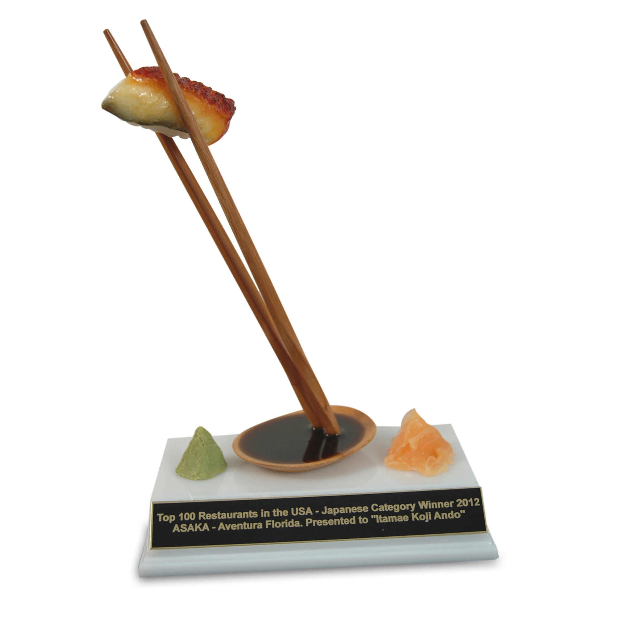 Our Eel Sushi Trophy is perfect for any food event or gathering. Or maybe you want to award the best sushi maker at a Japanese restaurant. We have a wide variety of sushi trophies like the Deluxe Sushi Roe Trophy and the Deluxe Salmon Sushi Trophy.