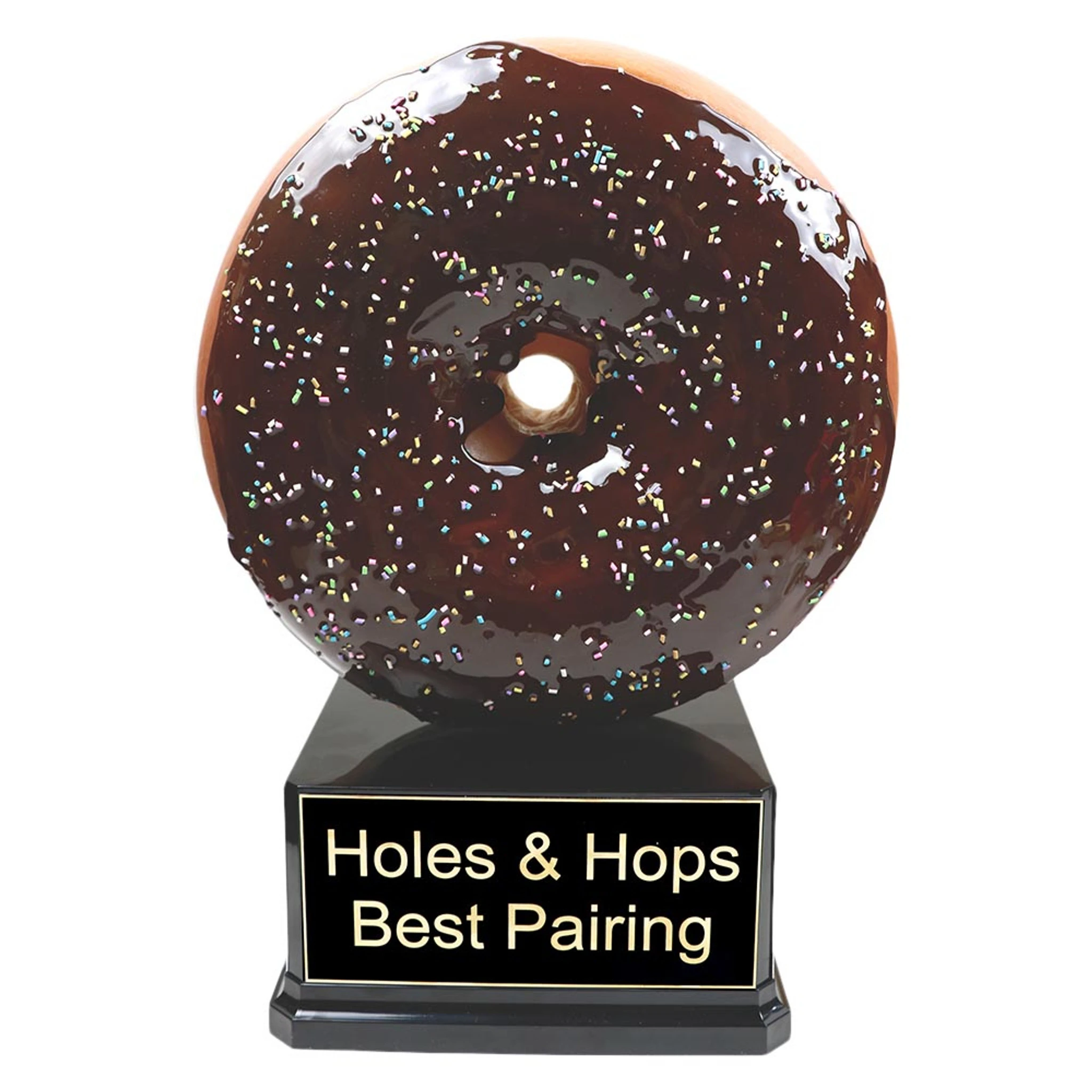 The Far Out Donut trophy is a HUGE award fit for the biggest donut lovers and donut eating champions. Standing at 13″ tall and 9″ wide, this trophy is truly larger than life. Custom engraving is included free, and ask us about creating a custom color/flavor donut as well!