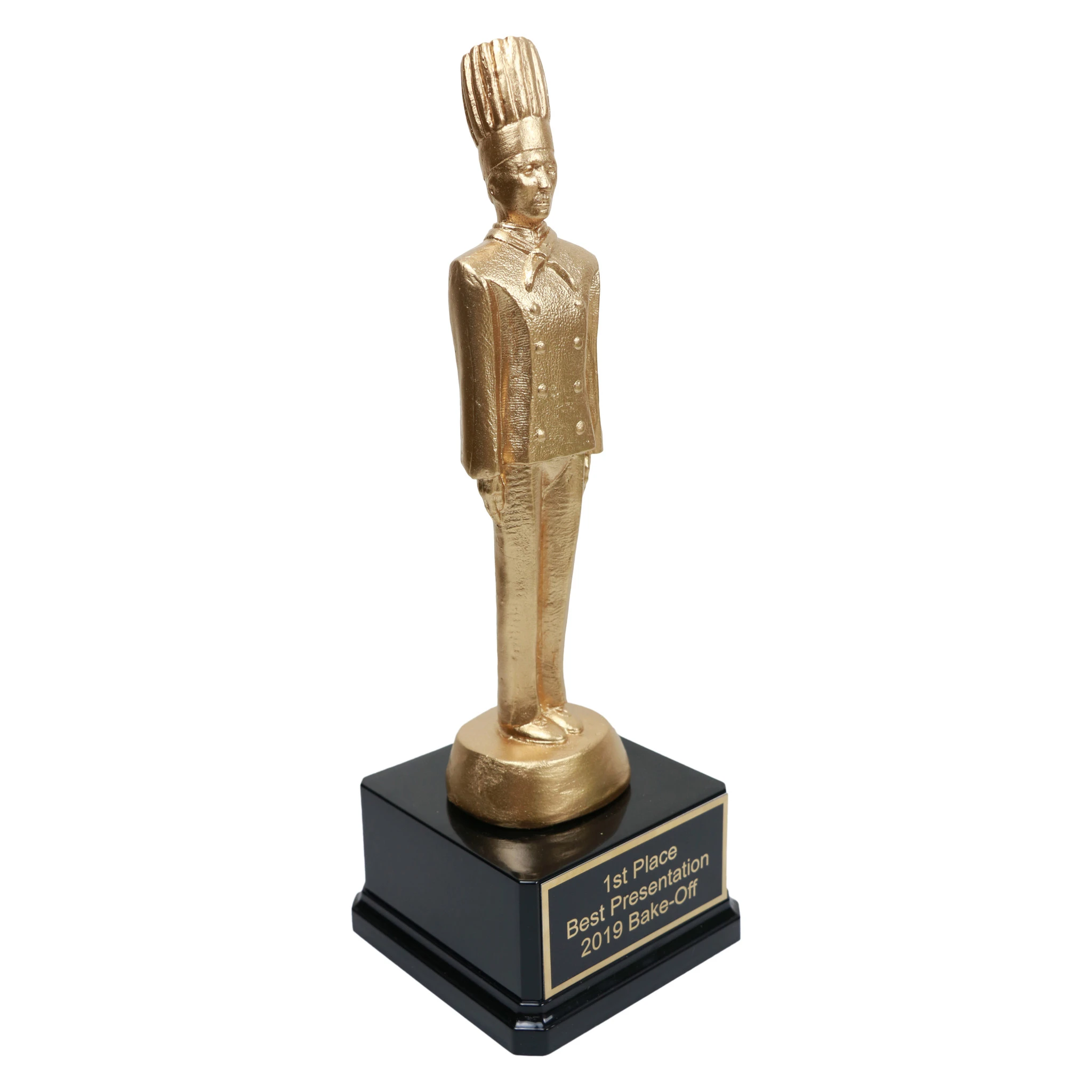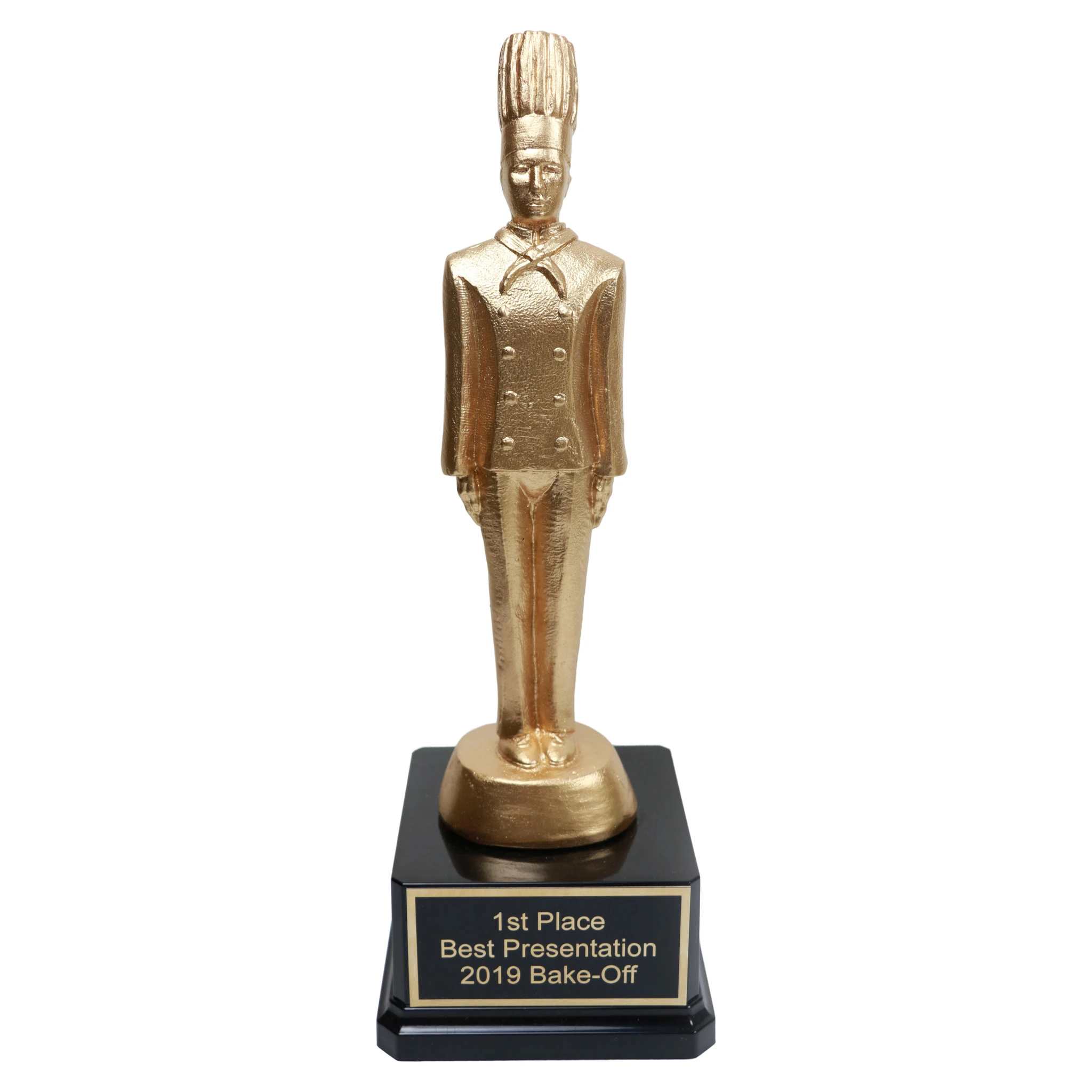 This Golden Chef Trophy is perfect for any culinary occasion, like a cooking contest. Or maybe you want to honor the best chef in town. Mounted on a heavy marble base, this golden chef is sure to distinguish any culinary genius!