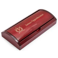 Made of two unique tones of wood, this business card holder is made just for recent graduates. The unique design allows the recipient to use it both as a desktop card holder or as a pocket card case Fold it closed to slide into a pocket, open it fully to display business cards on a desktop. The front comes with a graduation cap and scroll emblem laser engraved right into the wood. Below that, you can add the recipient’s name and school, or your own custom inscription, free of charge. Recent graduates will be proud to use this card case for networking, whether they’re on the road or in the office.