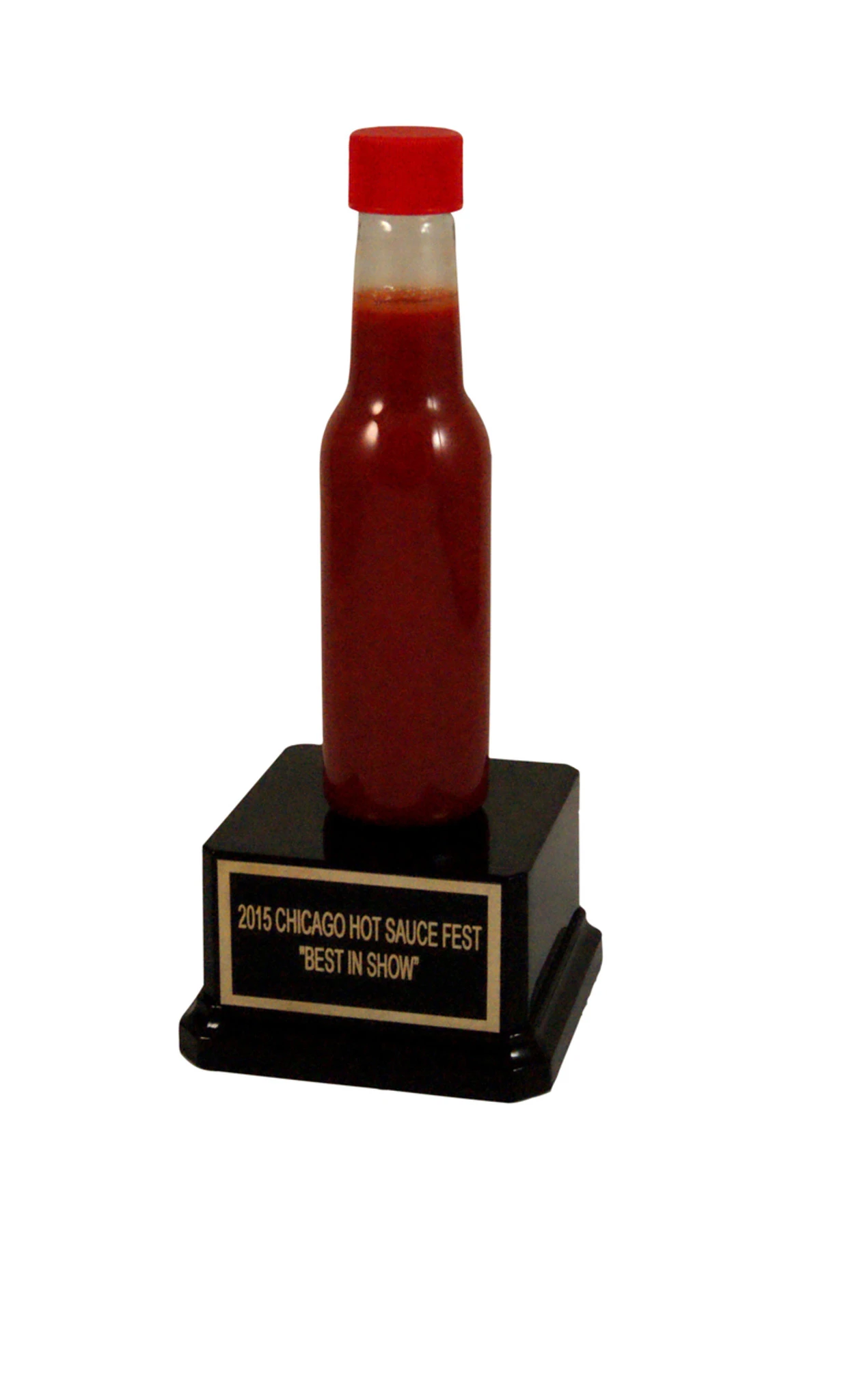 The Hot Sauce Trophy stands approximately 9″ tall x 3″ wide