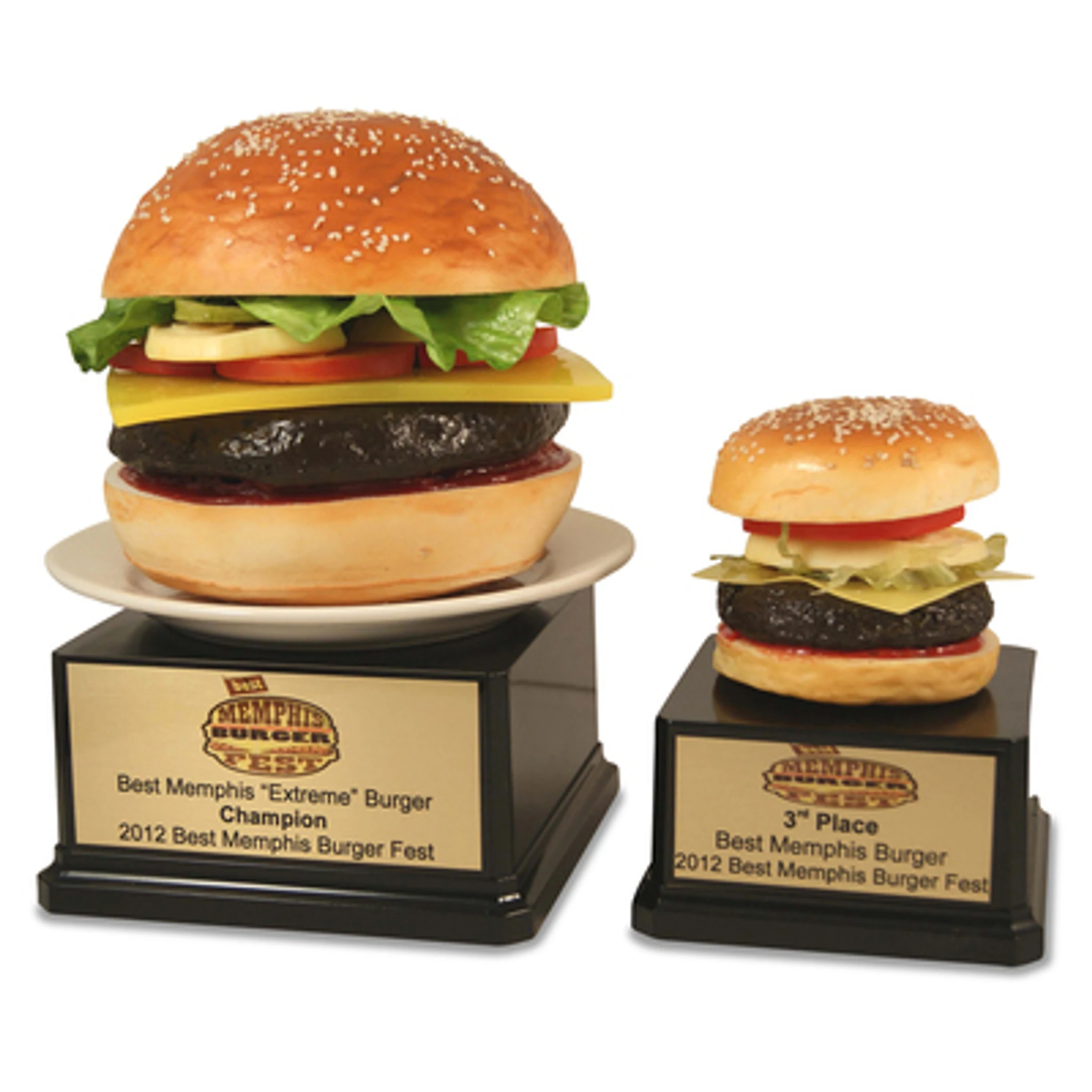 The Jumbo Far Out Burger Trophy stands ~30″ tall x 12″ wide