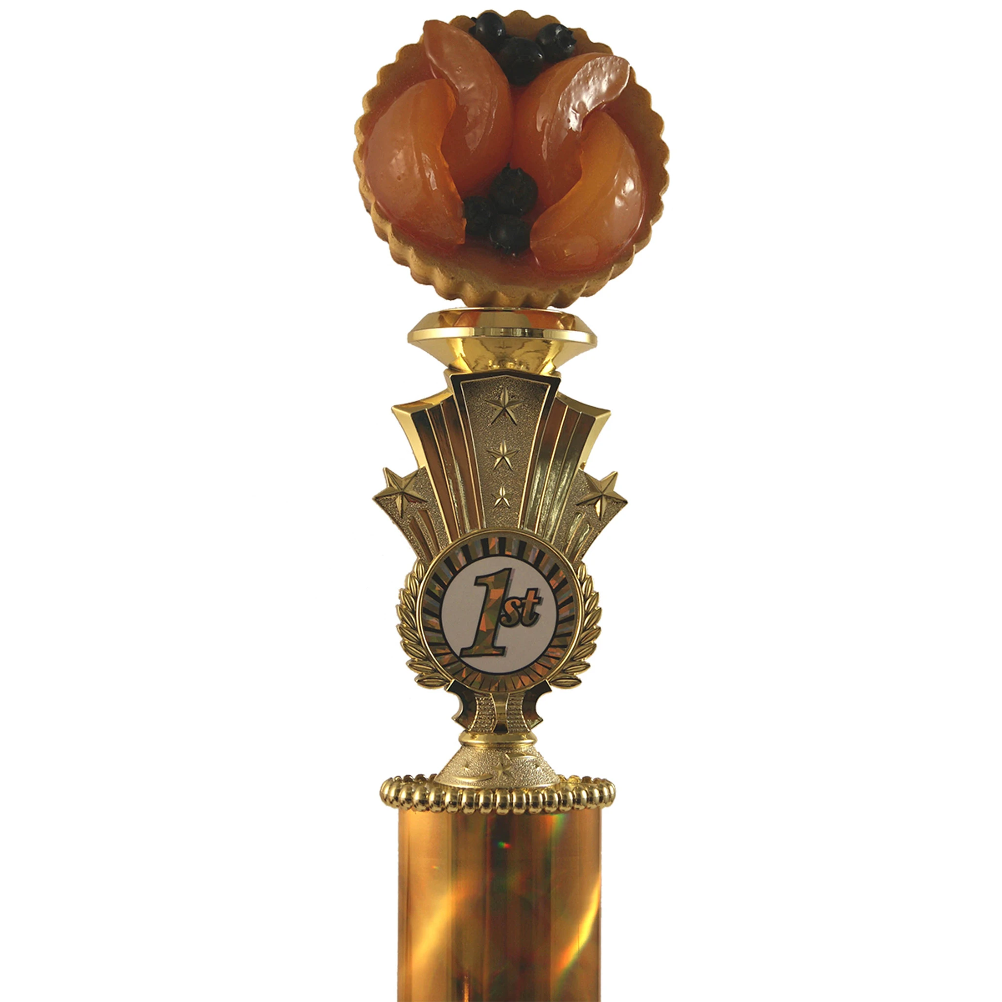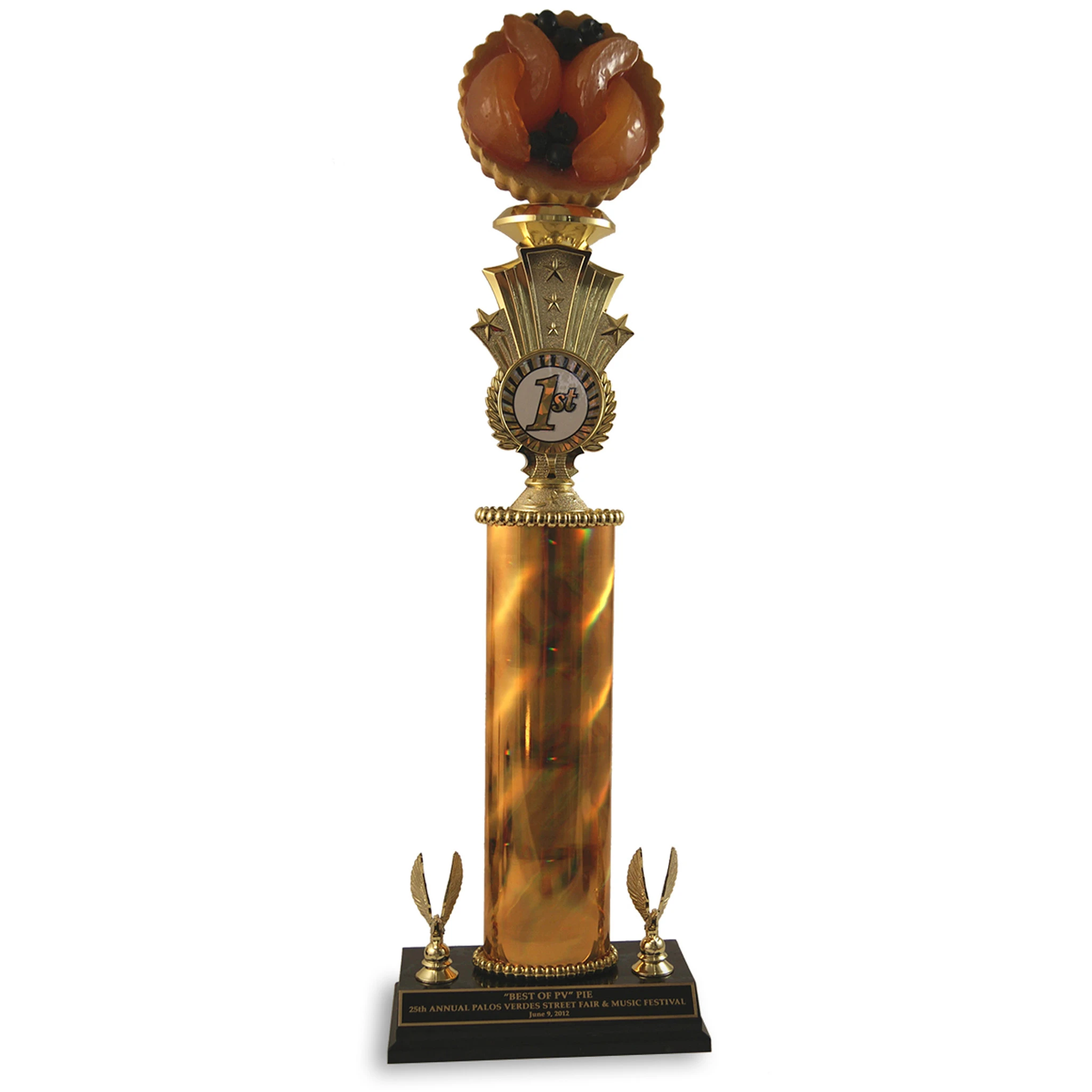 This Jumbo Pie Trophy is perfect for a pie eating contest. Or maybe you’re having a best pie baking contest or pie throwing contest/ Whatever the occasion, the pie trophy is a must have. The fruit within the pie can be customized upon request. Also, check out our other pie trophies like the Cream Pie Trophy and the Fruit Pie Trophy.