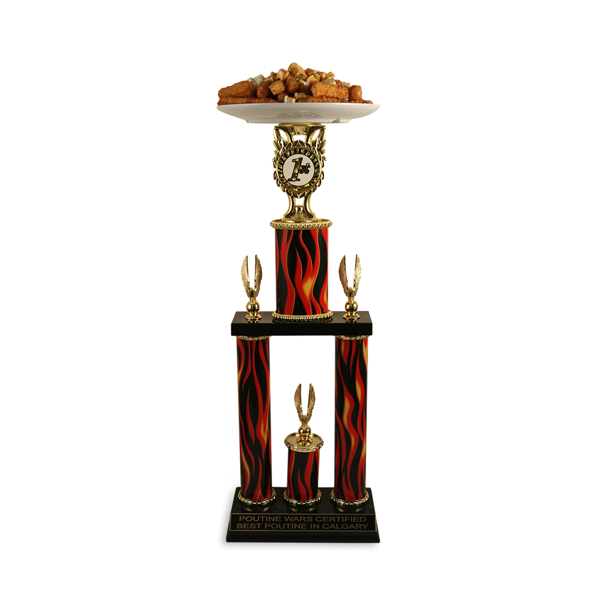 This Jumbo Poutine Trophy is great for a poutine eating contest or best poutine making competiton. This specific trophy shows you what we can do at Far Out Awards. We can make any type of food trophy you want, just name it! Also check out ourĀ Cheese Fry Trophy!