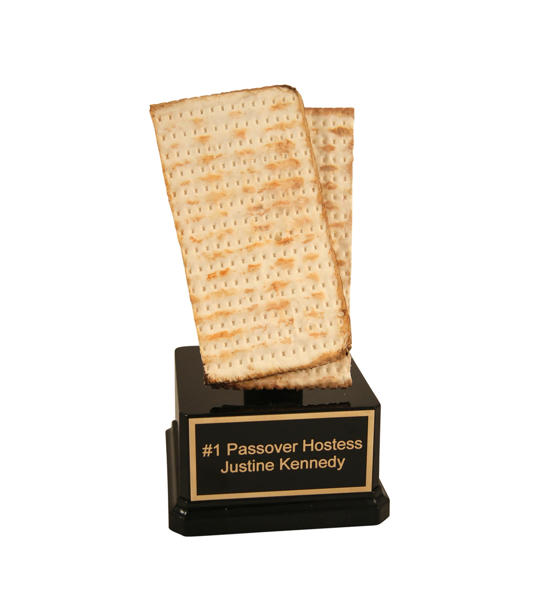 The Matzah Trophy stands ~ 9.5″ tall x 4″ wide
