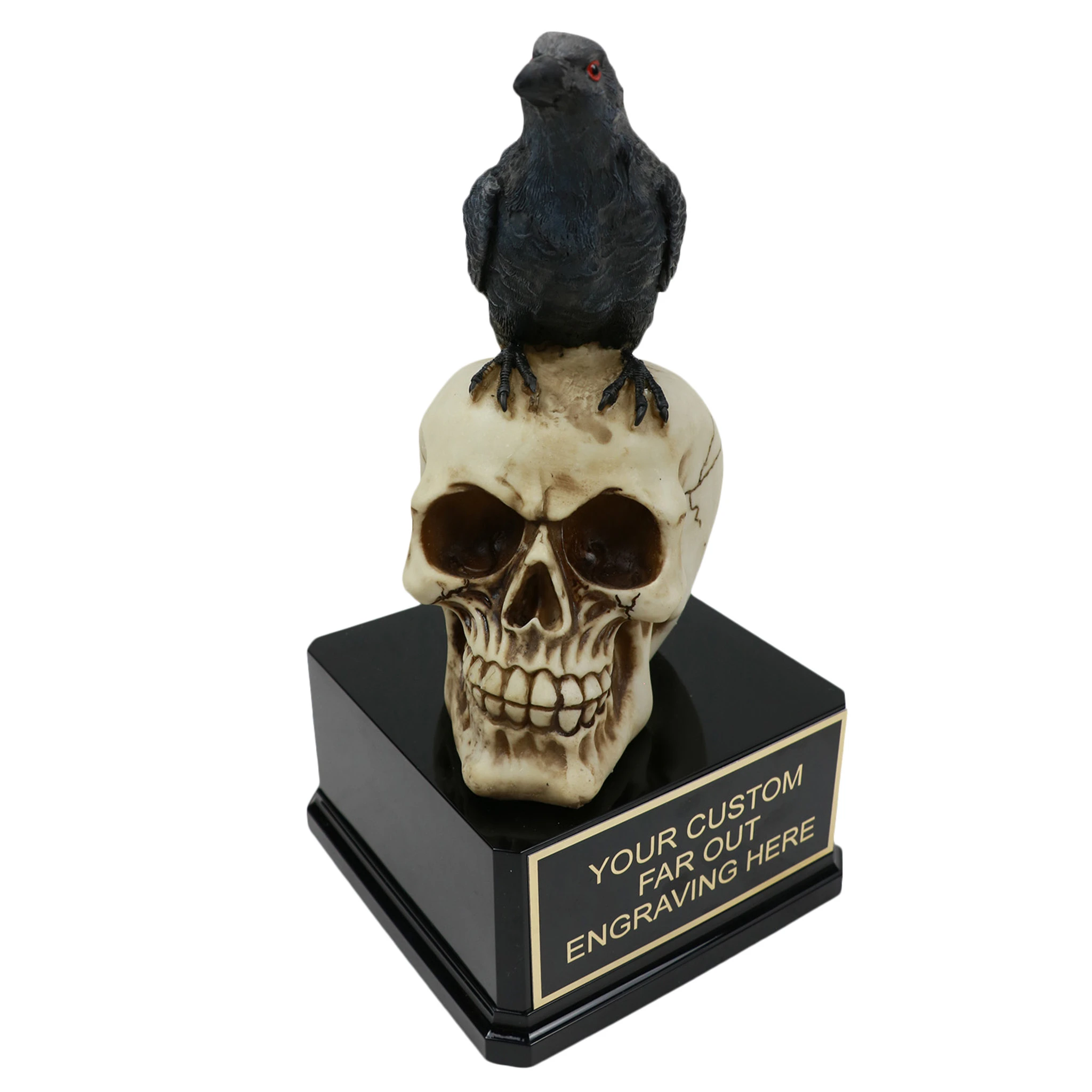 Another great Halloween trophy. Raven on Skull Award makes a great prize for any halloween competition. Free engraving is always included. Trophy stands 12″ tall with a 6.25″ squared base.