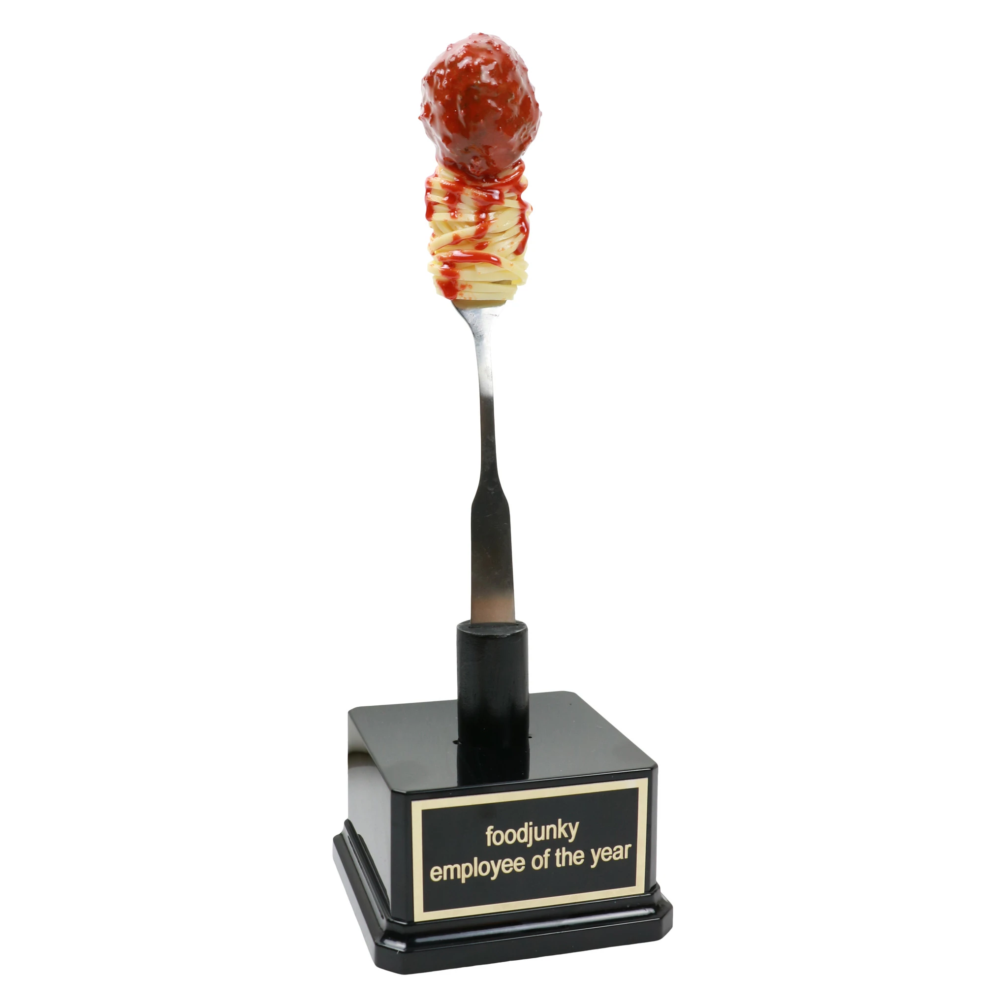 Pasted lovers rejoice with this Sauced Meatball Spaghetti Fork Award. Perfect trophy for Italian Food Competitions or anyone who loves spaghetti and meatballs. Trophy measures 12″ tall on a square base measuring 4″ x 4″. Trophy also available un-sauced.