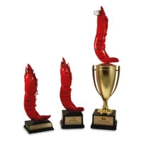 Small Shrimp Award ~9″ H x 5″ W, Large Shrimp Award ~10″ H x 4″ WÂ
